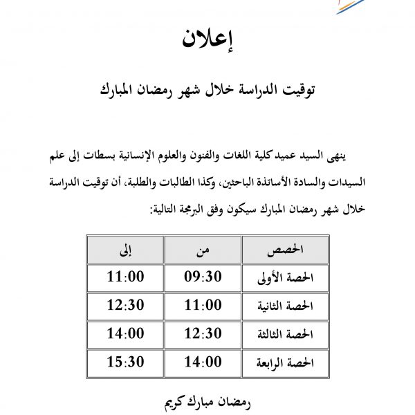 في إطار المحاضرات المفتوحة التي تنظمها جامعة الحسن الأول بتنسيق مع كلية اللغات و الفنون و العلوم الانسانية. سيلقي القنصل العام للولايات المتحدة السيد LAWRENCE M.RANDOLPH.