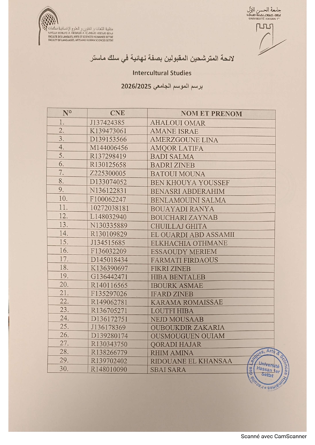 “Intercultural Studies” لائحة المترشحين المقبولين بصفة نهائية في سلك الماستر ACTUALITÉS FLASH 17 octobre 202517 octobre 2025 flashweb Post Views: 1 181