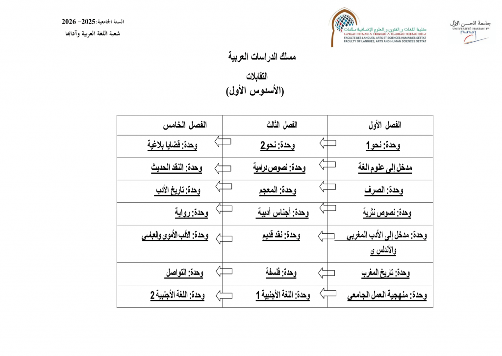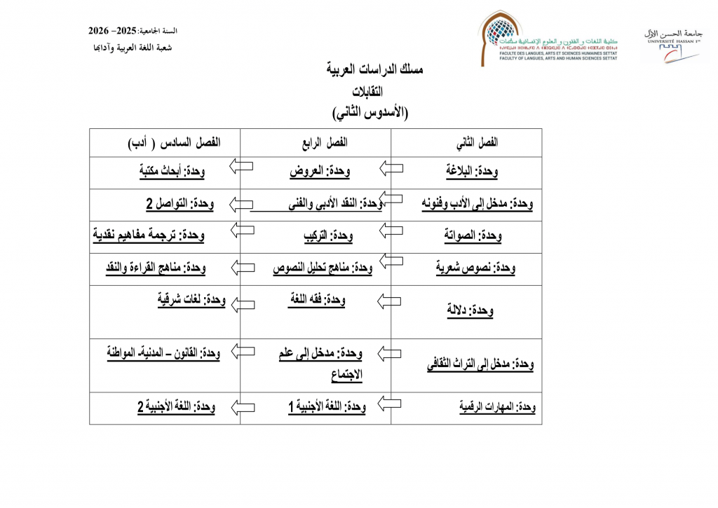 جدول التقابلات الدراسات العربية