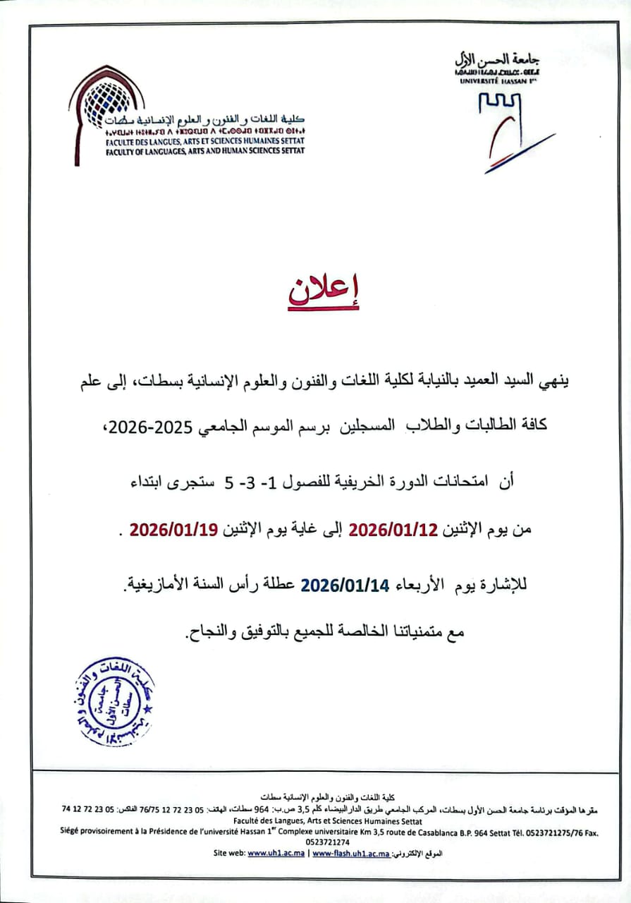 إعلان: امتحانات الدورة الخريفية