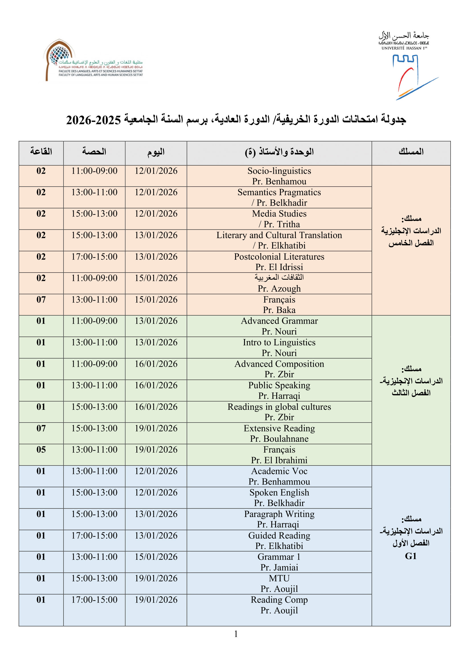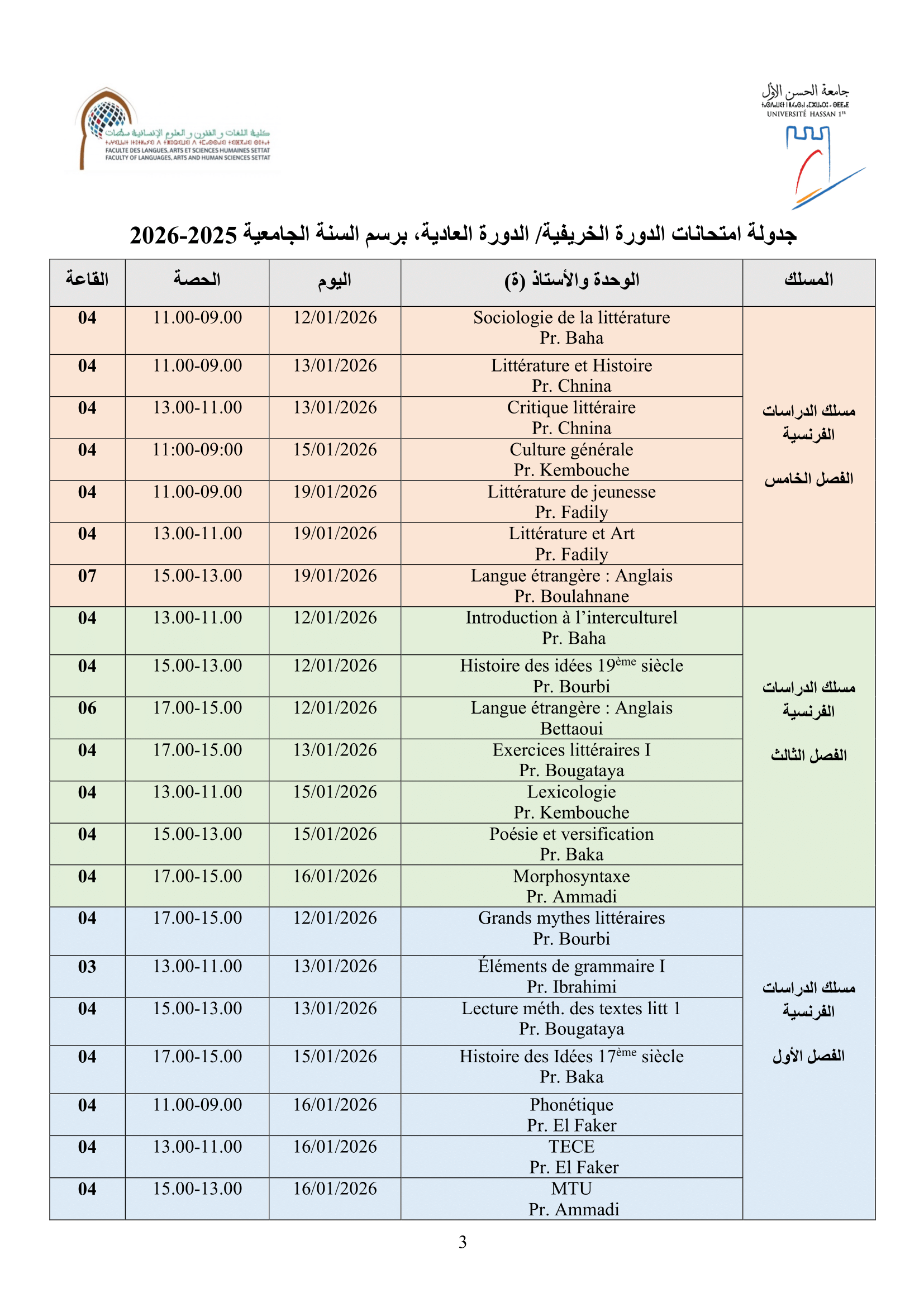 _جدولة امتحانات الدورة الخريفية، الدورة العادية 2026 _ 2025 ACTUALITÉS FLASH 8 janvier 2026 flashweb _جدولة امتحانات الدورة الخريفية، الدورة العادية 2026 _ نسخة محينة (1) Post Views: 129