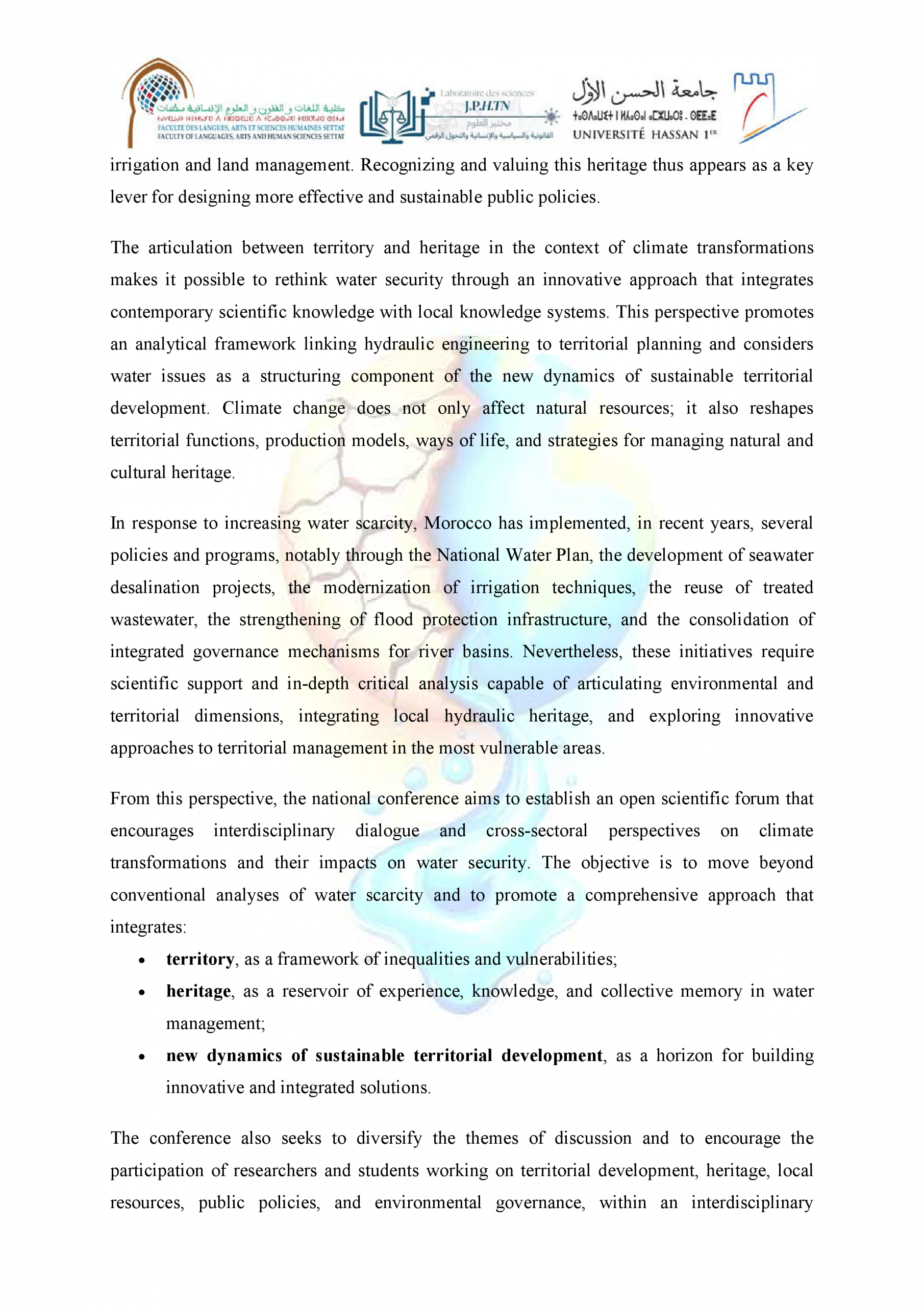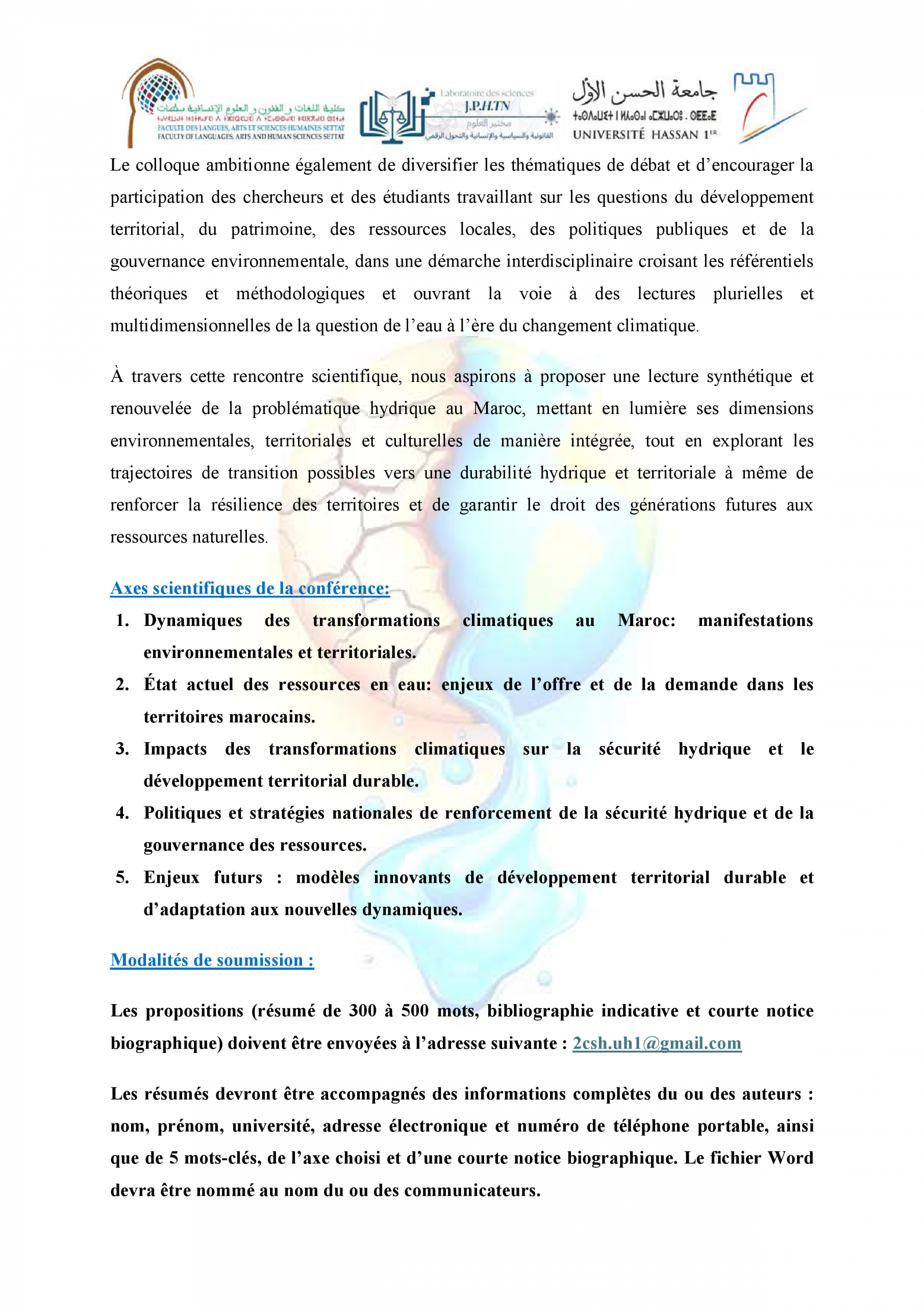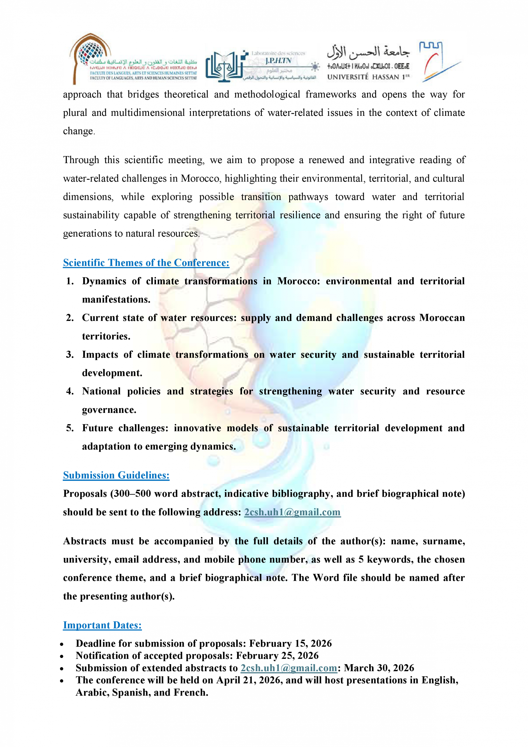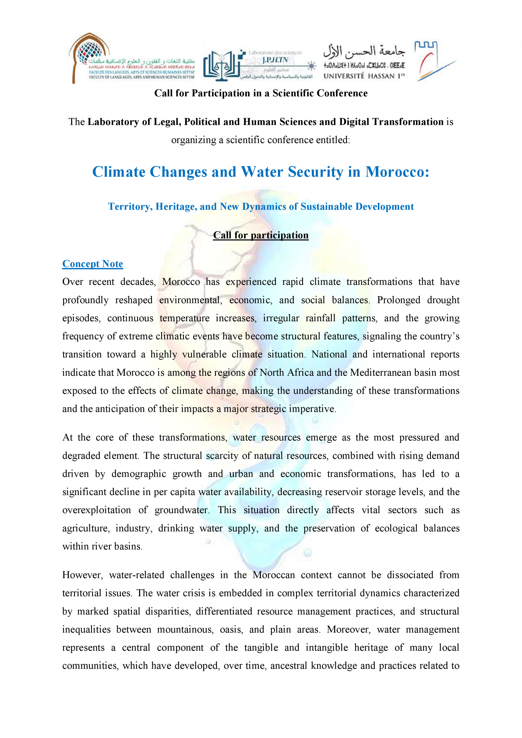 دعوة للمشاركة في ندوة علمية حول: التغيرات المناخية والأمن المائي في المغرب: التراب، الثرات والدينامية الجديدة للتنمية المستدامة ACTUALITÉS FLASH 3 février 2026 flashweb Post Views: 21