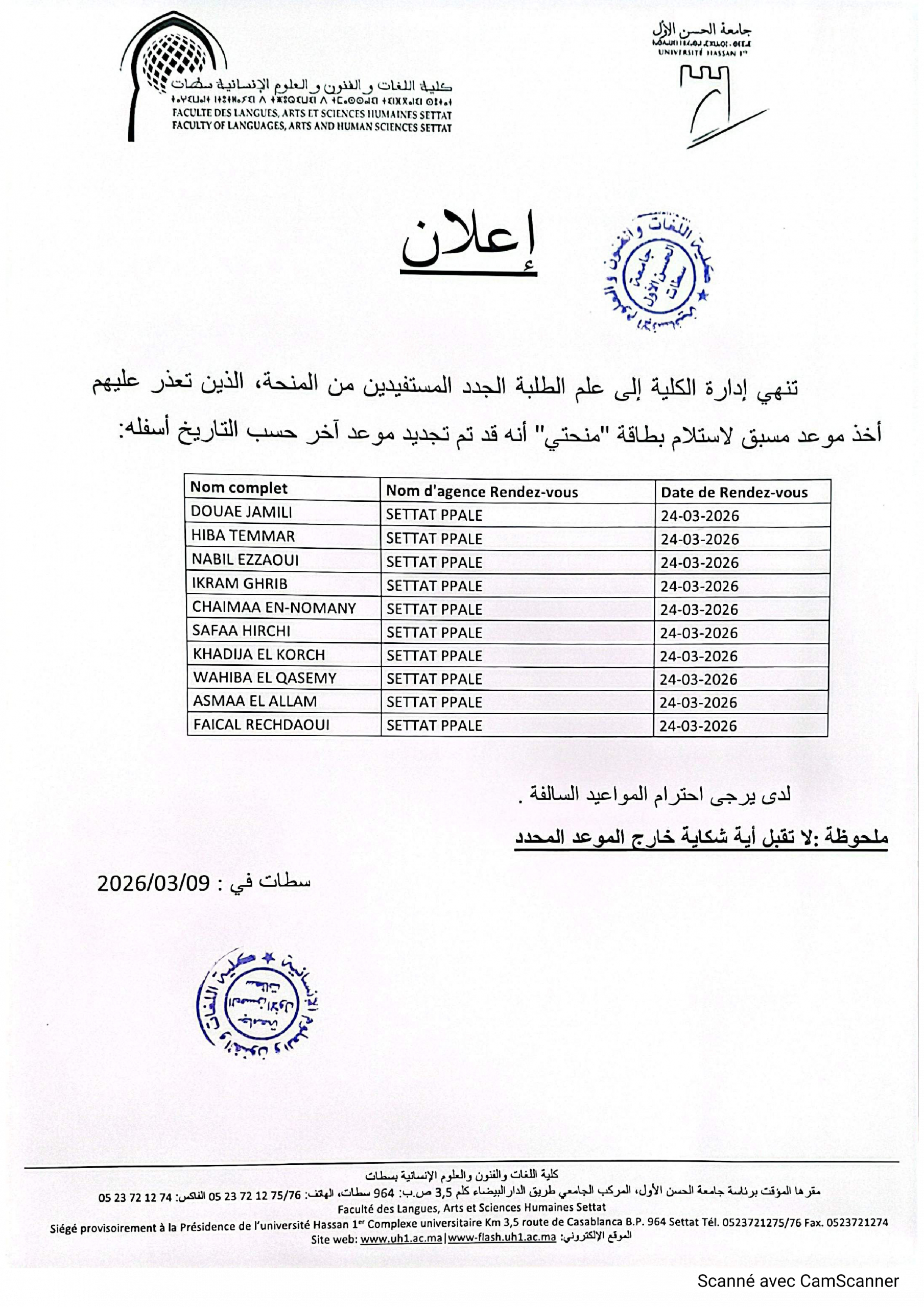 Complexe Universitaire hassan 1er Route de Casablanca Km 3,5 : BP 964 Settat